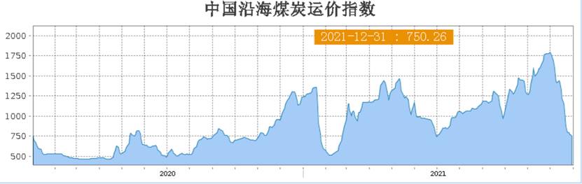 本周,沿海煤炭運(yùn)價(jià)仍然維持跌勢(shì),不過(guò)跌幅明顯收窄。截至12月30日沿海煤炭運(yùn)價(jià)指數(shù)為758.65,較上周同期下跌117.66點(diǎn),跌幅13.43%;較上月同期下跌1027.35點(diǎn),跌幅57.52%;較去年同期下跌447.65點(diǎn),跌幅37.11%。
